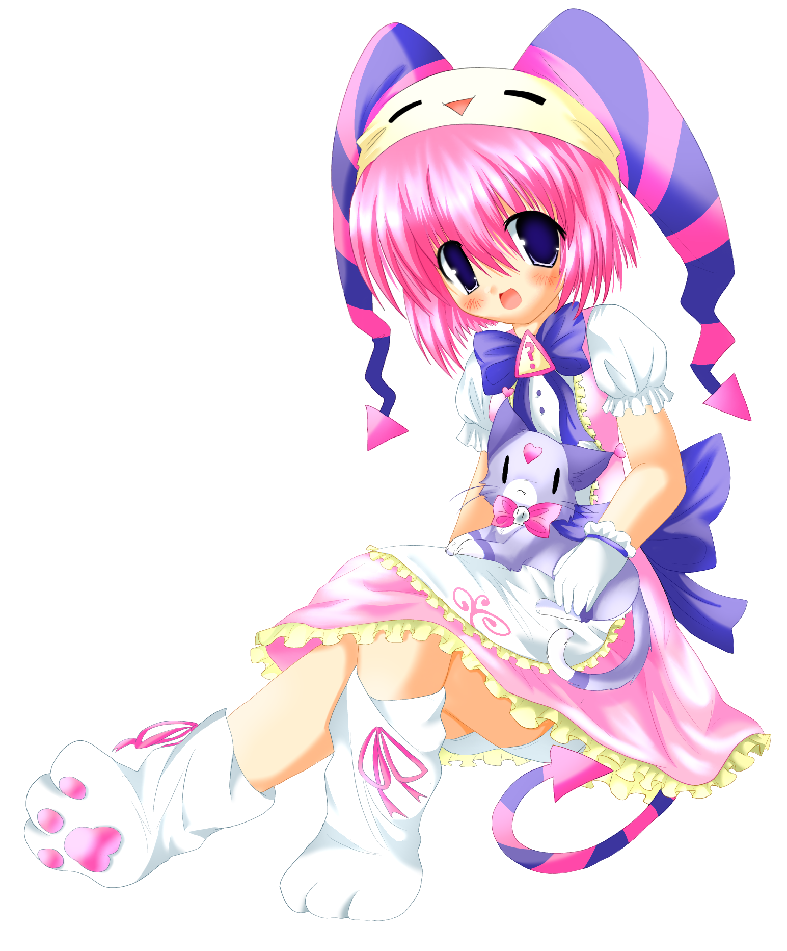 she is my mascot character of the site, and works as a maid in a cafe with her sisters. she struggles when making cofee but aces at baking cupcakes. she has two companions, a little demon and a kitty. ( the demon being the voice of reason to stop ichika from doing something completley stupid as she does.) her spoon is just a prop and not an actual weapon, as much as she accidentally whacks people with it sometimes while trying to preform stunts. shes extremley energetic and eager to do the best she can!!! aswell as being extroverted. her paw-like boots are very light despite their size, making her get around faster.