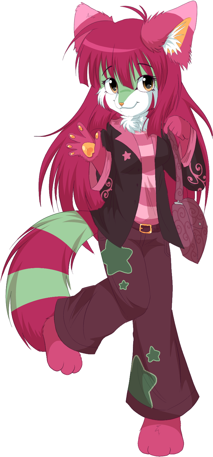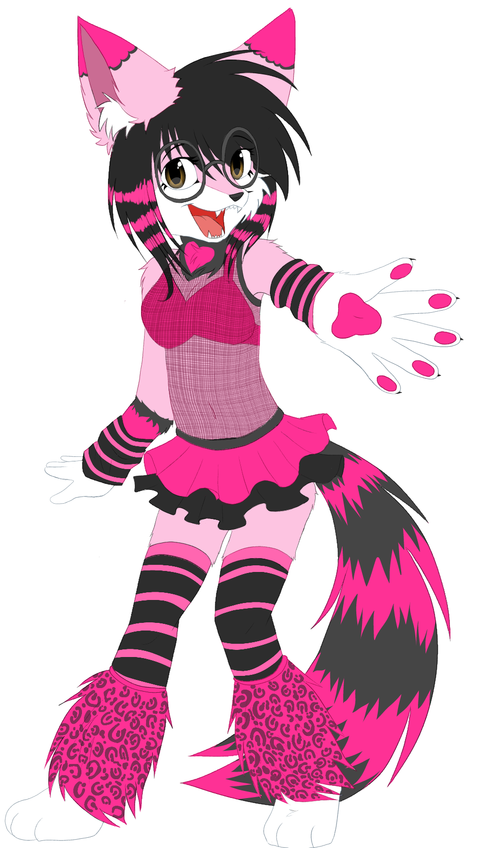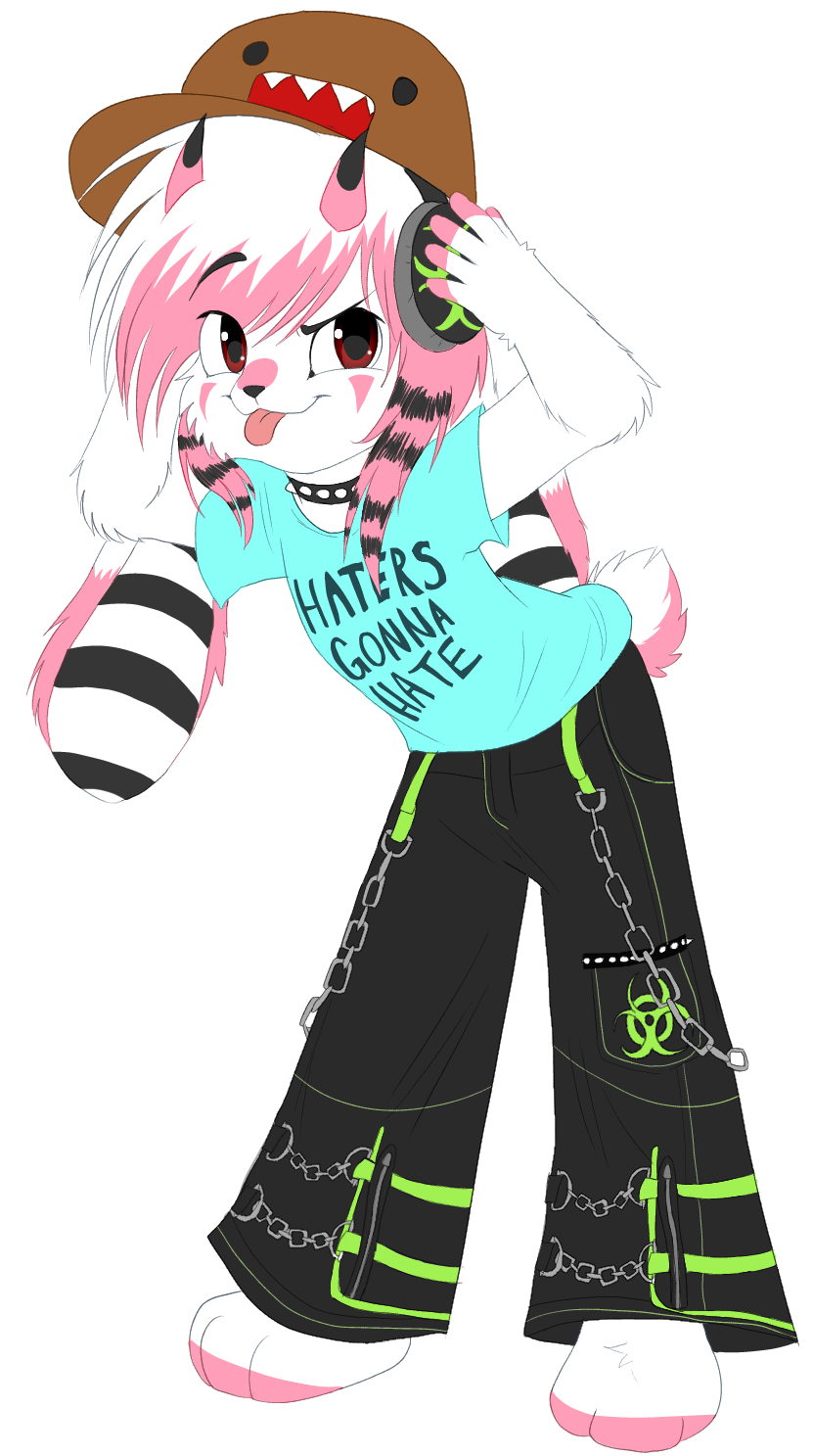 a party animal. litterally!! she comes before evreybody else and leaves early. she also frequents thrift stores pretty often. she cares alot about her looks, often feeling paranoid or insecure, so she sits all day at home fixing her hair or re dying her fur, painting her nails black, and doing her makeup. she loves to hang around shadow and skittles. she also smokes with them.