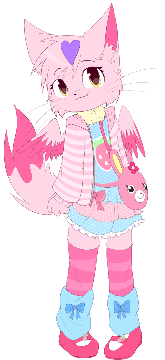 Yumis sister. she loves cute things!! she always has escuses to dress cute at any given moment. she loves horror!!! horror games, movies, books, shes seen it all!! her sister really wants to watch it but kitcat never lets her. she loves springtrap from fnaf/ she is my oldest character being made in 2017 ( i used to use her as a mascot of sorts when i was 9 )