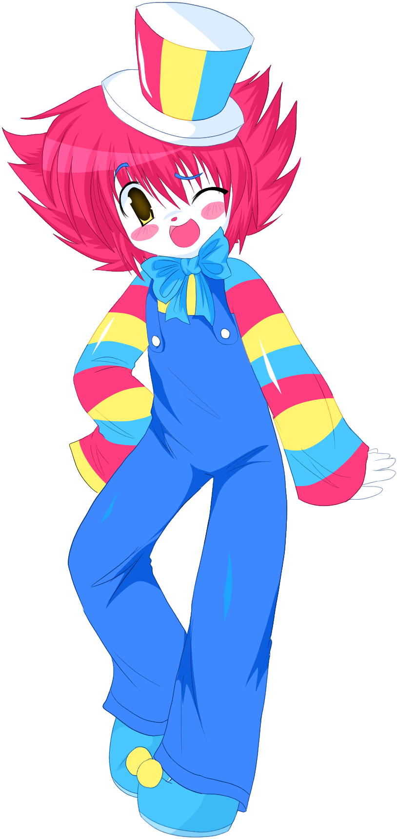 funny clown guy, first human OC. hes really just depressed under all that makeup. but has a good sense of dark humor. he loves to make others laugh, so much so that he forgets to cheer himself up. he hates other clowns, especially ronald mcdonald....also, jozo secretley has burgers under his hat for no reason......